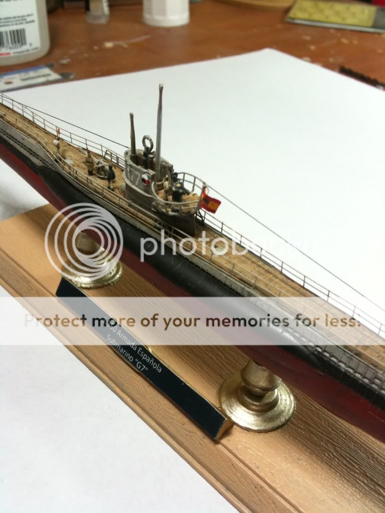 Hola, gracias por tus comentarios. El esquema del G7 fué algo difícil de encontrar la información exacta, después de checar revistas, fotos y artículos. Llegue a la conclusión que en los 50's el esquema era gris naval, en una Foto se puede ver que la cubierta es maderA porque es casi igual de clara que la pintura, los alemanes en la gran mayoría de los casos la pintaron de gris oscuro,pero con tiempo de uso lo perdía,la waterline fue sacada de una Foto de la misma época en la que se nota claro la diferencia de tonos entre el casco rojo, negro por la línea y gris del resto. Si alguien te dice que era gris podría ser valido pero no lo recomiendo. En los 70's todo el submarino se pintó d negro y quitó el cañón de 88. Saludos
