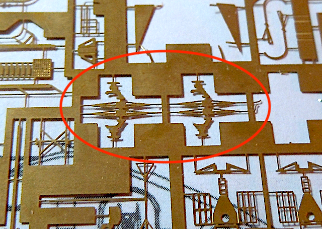 Daros cuenta que el fotograbado no nos proporciona la antena en sí, lo que nos da en realidad son los tirantes que sostienen la antena. Pero todo es tan chico que este detalle pasa desapercibido.