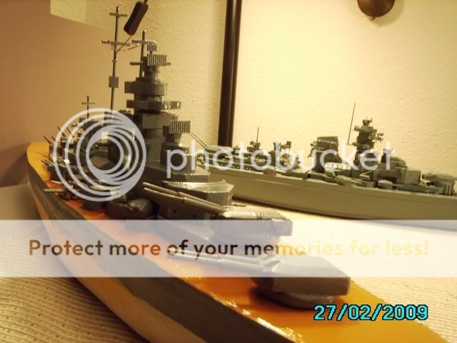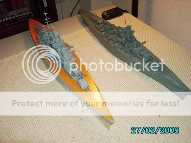 Hola a todos,os pongo mas fotos del Bismar en plastico y Clon en madera del Tirpitz.