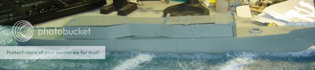 Una prueba,no es definitiva, le falta mas espuma y canbiar unos grados la orientacion de las olas de los costados,pero bueno era para ver como podia quedar.La superestructura todavia no esta pegada.