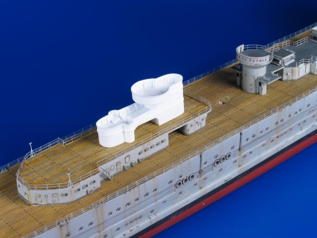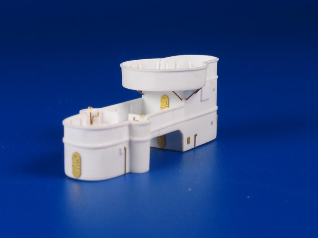 Hoy toca la plataforma de los telémetros de popa. Esta estructura va situada encima del guardacalor de popa justo detras de la torre nº3. Como podeis ver sus formas siguen en la línea del resto del buque, o sea, que es muy rara y de construcción algo complicada.