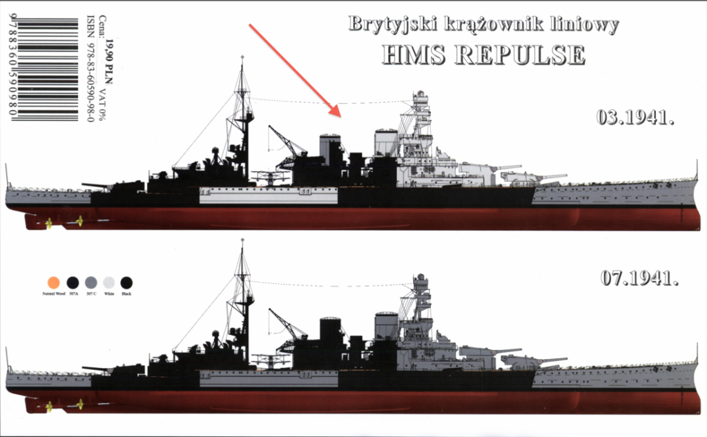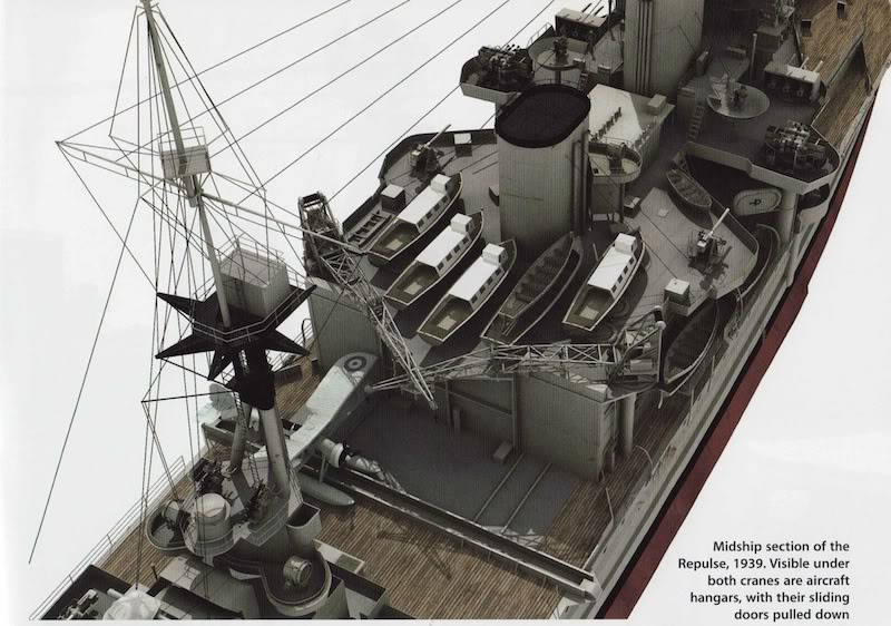 Tomemos otra fuente, en este caso una foto de la maqueta del Repulse hecha por George Pék. - Foto tomada del la portada del libro BRITISH BATTLECUISERS OF THE SECOND WORLD WAR -,