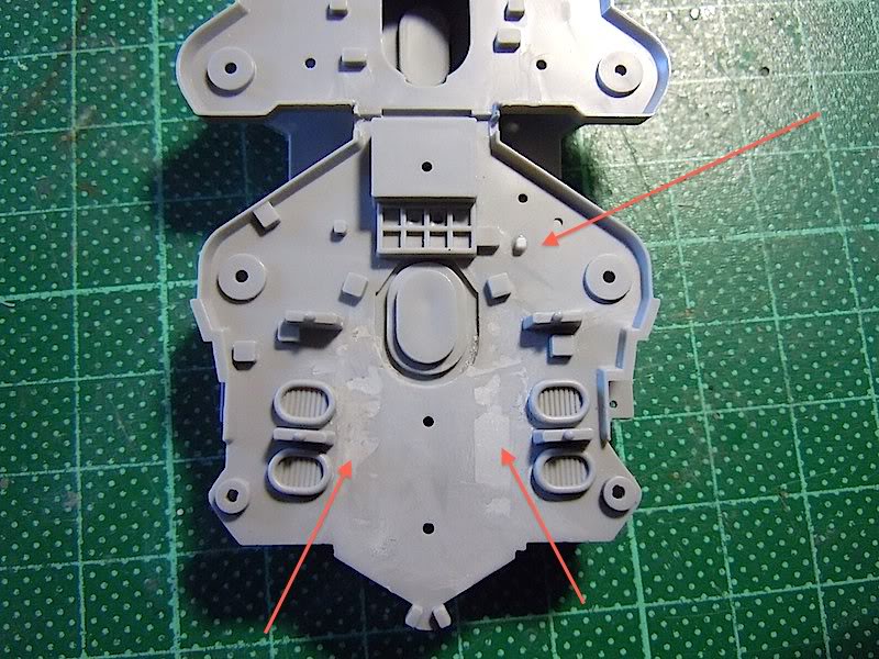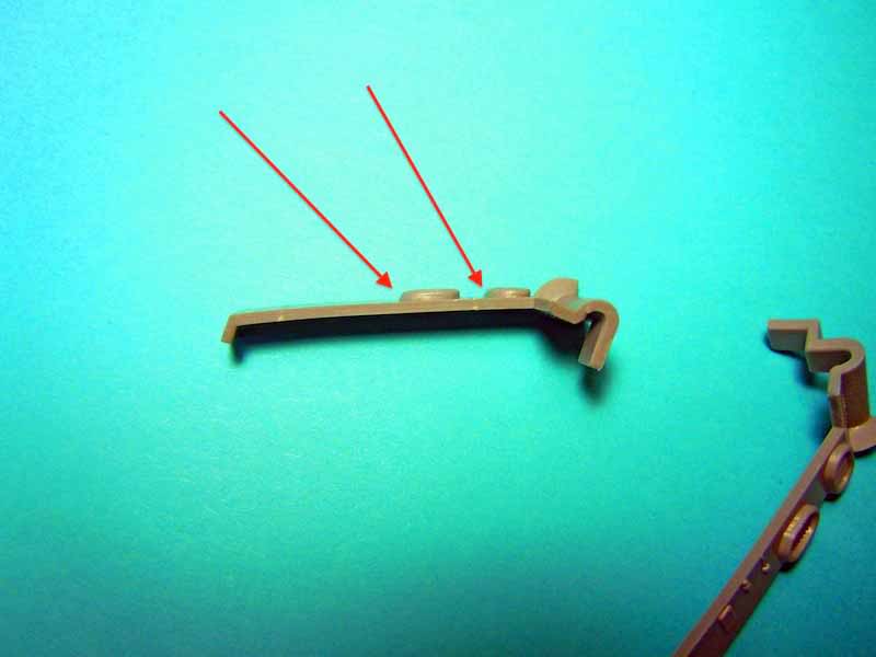 En el techo del hangar de los aviones se deben de eliminar las siguientes partes para su substitución por otras de fotograbado :