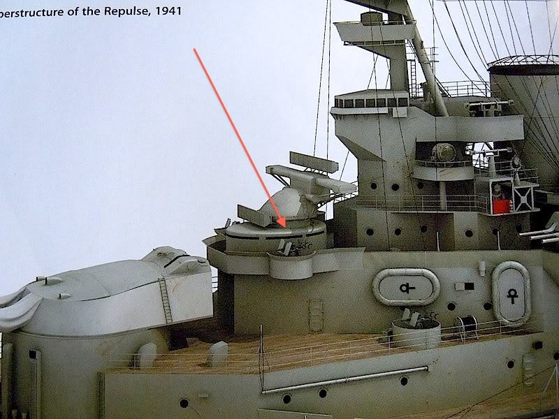 Si observamos con detenimiento la parte anterior del puente, veremos que en la versión de 1941 se le habían añadido dos barbetas una a derecha que no estribor y otra a izquierda que no babor para ubicar en ellas sendas " Escopetas automáticas" a fin de procurarse caza abundante para el rancho de la marinería.