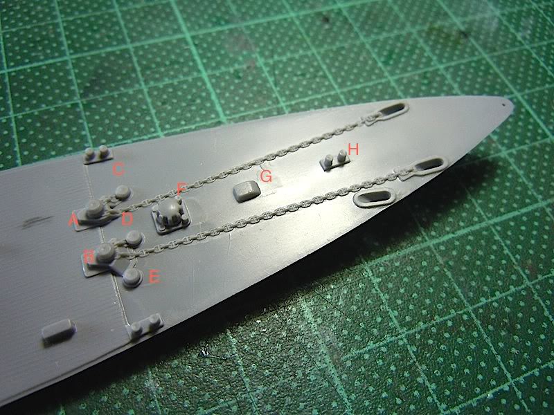 Además de ello hay que eliminar las cadenas, fabricarles la base y substituirlas por las que indiqué al principio de este hilo, ponerle todos los "Accidentes geográficos" que faltan y esos bastones que veis en cubierta y que en mi modesta opinión servían para castigar a los arrestados.