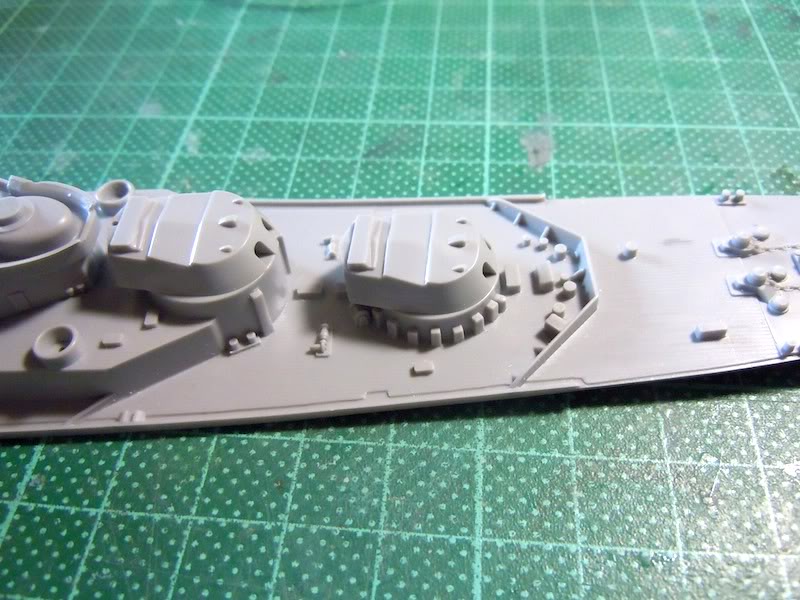 En capítulos anteriores hemos visto la cubierta posterior de esta superestructura donde hay unas partes que hay que eliminar para substituirlas por otras de fotograbados a fin de qué sean lo más realistas posibles. Véase :