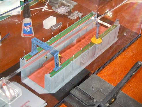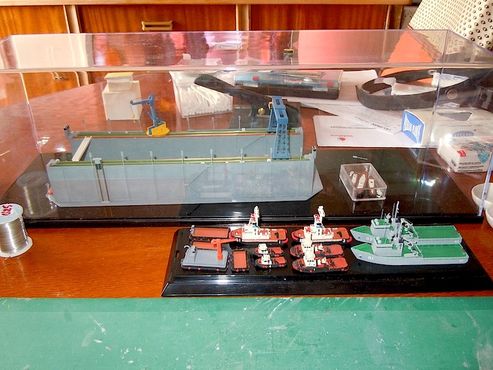 Dice Bautista, despues de mucho rogarle, que la escala que el trabaja es 1/700. Parece ser, pues el no me lo ha qerido confirmar, que el famoso dique que se ve en la foto está basado en uno real que es Sueco o Noruego, no lo tengo muy claro pues Bautista habla poco y se muestra reservado. :biggrin: :biggrin: Está hecho a scratch.