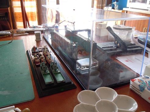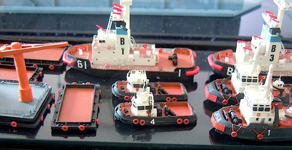 Los barquitos de la cubierta verde son dos remolcadores oceánicos de una serie de cuatro que ya está completada y que están basados en unos remolcadores de E.E.U.U. La escala sería 1/700 y están hachos a scratch.