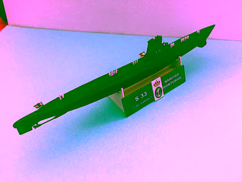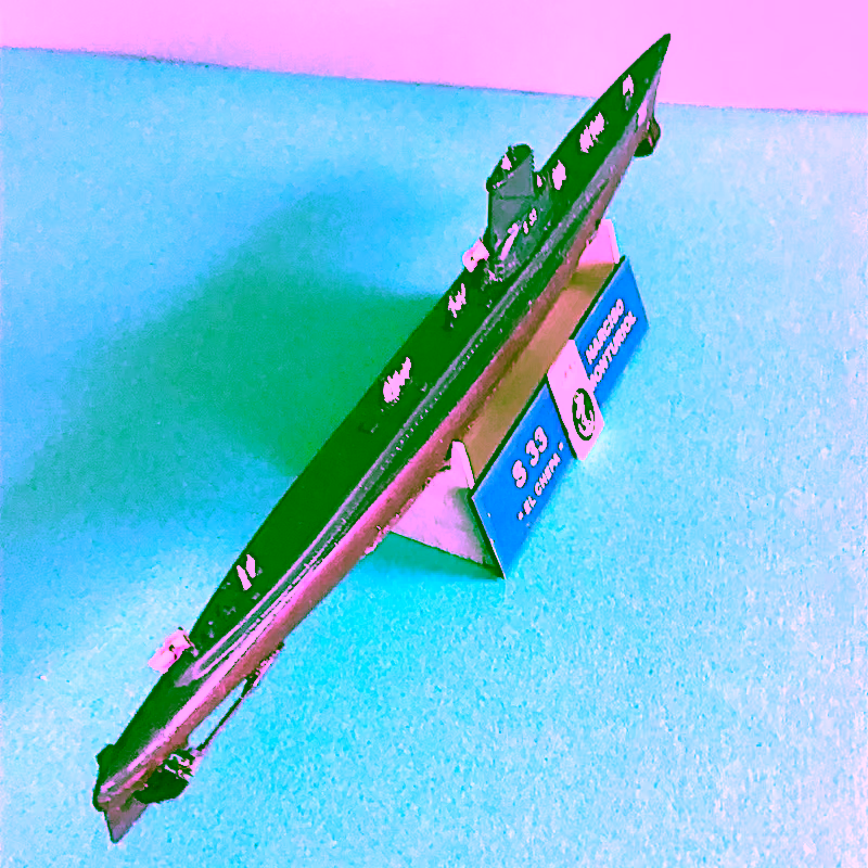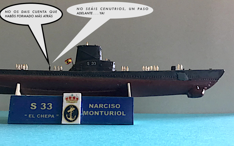 He hecho este submarino a escala 1/600 como casi todo lo que hago y le puse dos trozos (babor y estribor) intentando formar para revista. El caso es que estuvieron “celebrando” un poco  :wacko: :wacko: :wacko: y de ahí la formación poco rigurosa y el cabreo del Contramaestre.