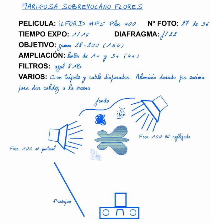 Croquis de situación (cámara, modelo, luces…)