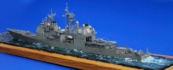 Como es habitual y como me gusta más, lo he puesto navegando sobre una base imitando la mar, con pinturas al oleo y acabado con barniz cerámico. Otro detalle de mi manera de trabajar, solo pinto a pincel y con esmaltes de la casa Humbrol.